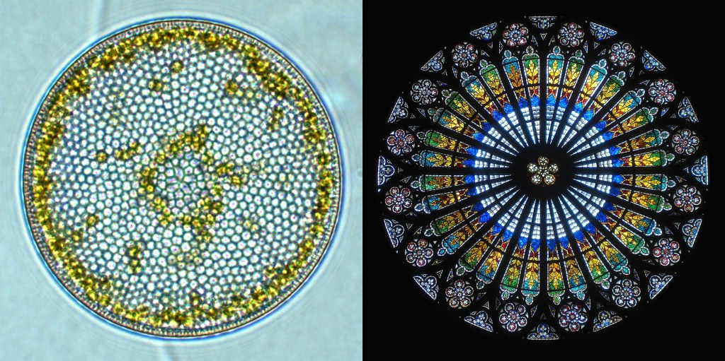 As far as looks go, diatoms often steal the show. Not all microalgae can measure up to a cathedral’s rose window :